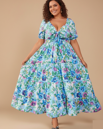 Like wearing a watercolor garden that moves with you.This ruffle-trim blouse bursts with painterly florals...