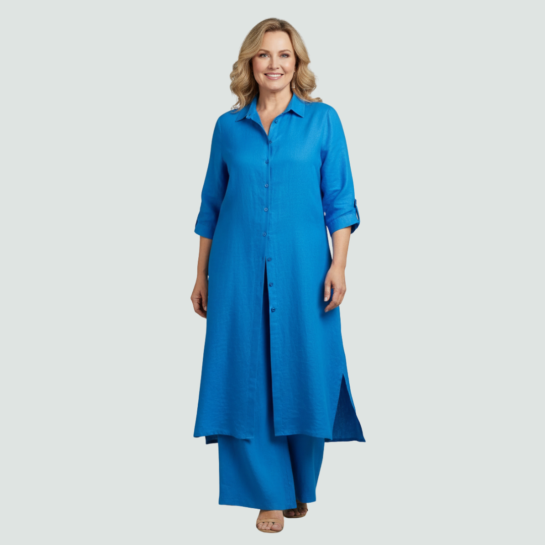 Alira – Relaxed Blouse Dress and Wide-Leg Linen Pants