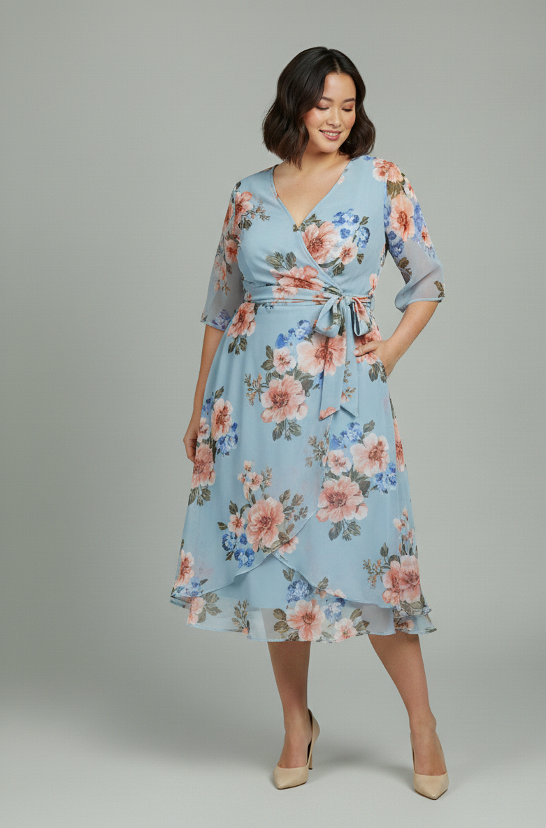 DARCIE | FLOWING PETAL DRESS WITH ELEGANT TUMMY COVERAGE