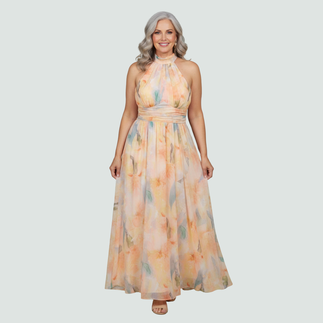 Marissa – Maxi Halter Dress with Open Back in Watercolor