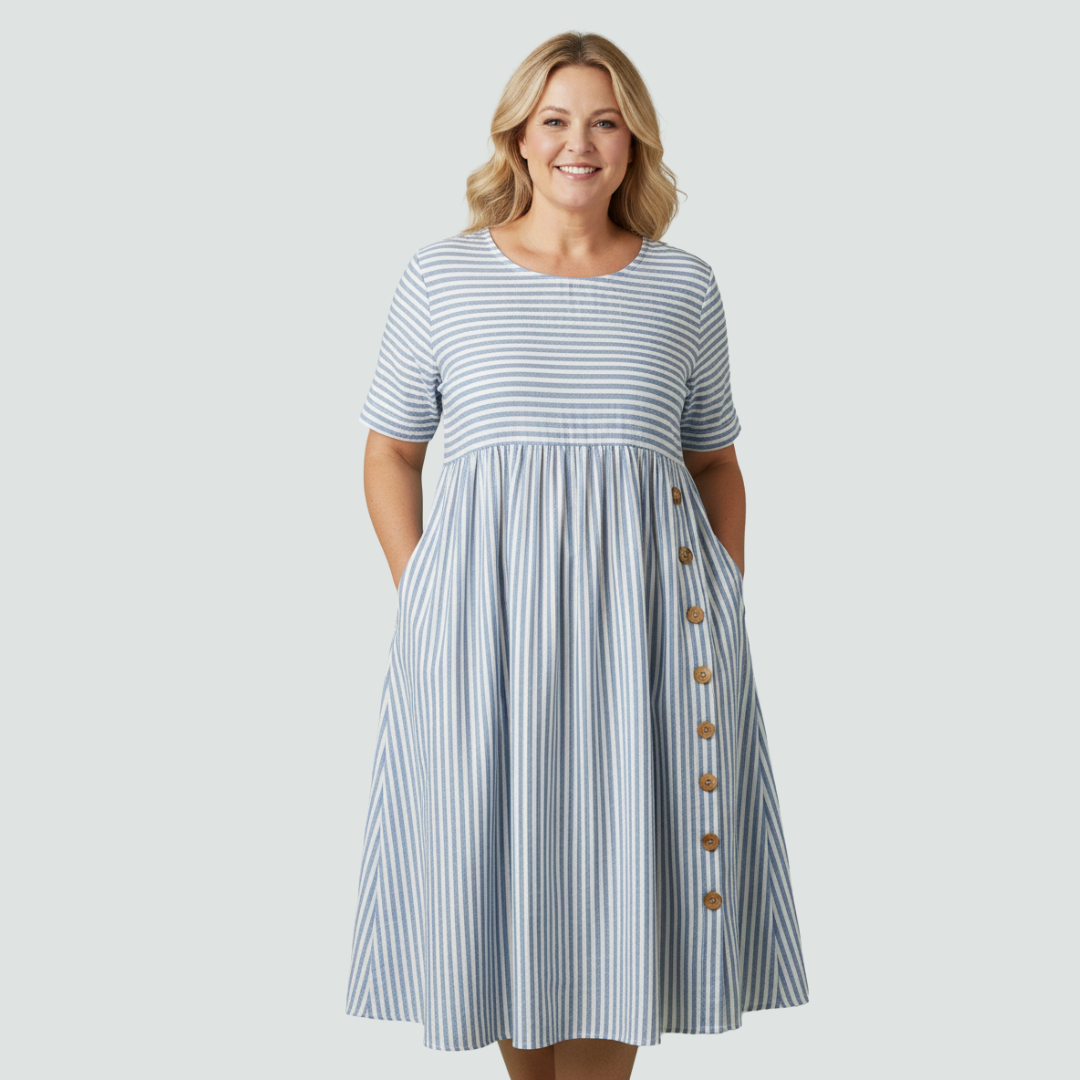CORA | STRIPED COTTON MIDI DRESS WITH RELAXED ELEGANCE